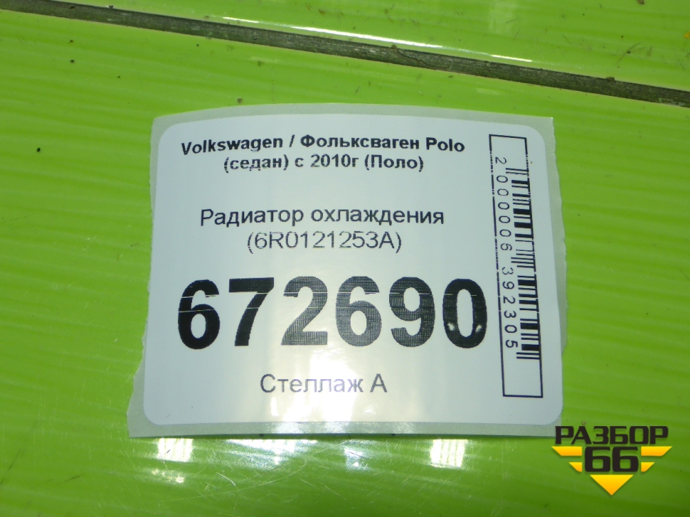 Радиатор охлаждения (6R0121253A) для Volkswagen Polo (седан) с 2010г (Поло) в Москве