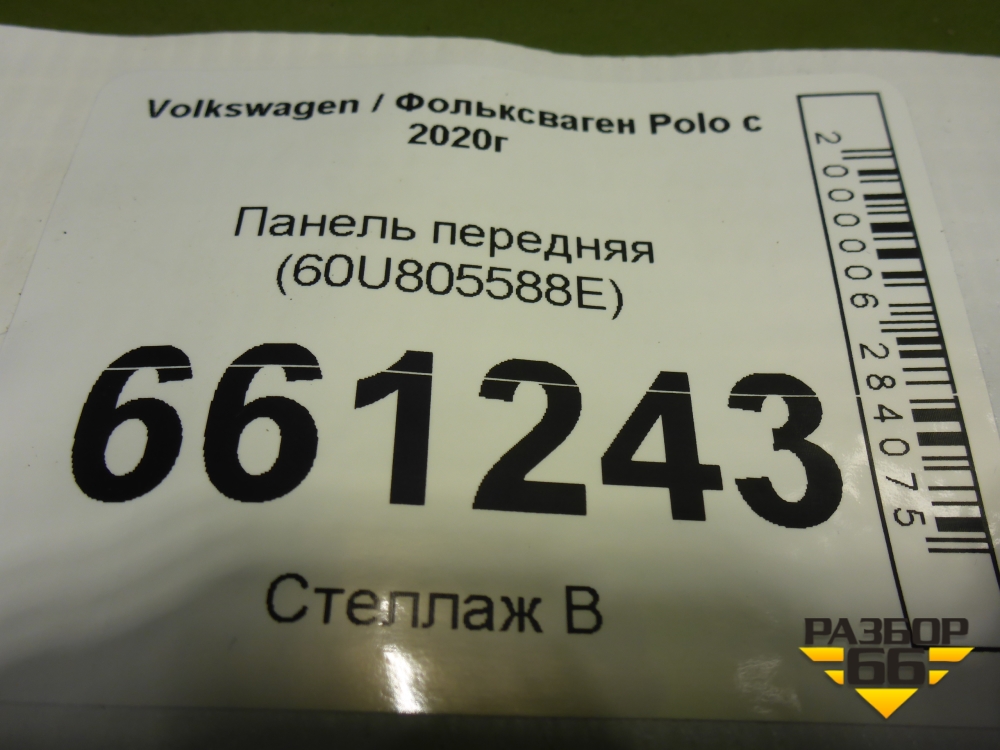 Панель передняя (60U805588E) для Volkswagen Polo с 2020г (Поло) в Москве