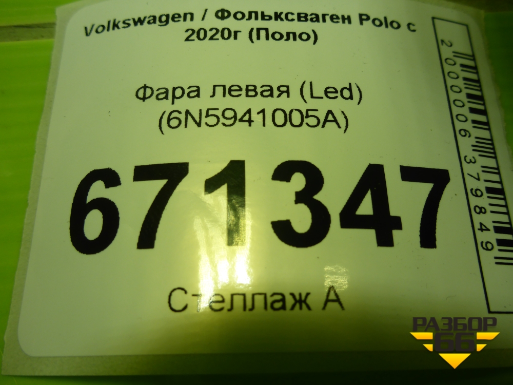 Фара левая (Led) (6N5941005A) для Volkswagen Polo с 2020г (Поло) в Москве
