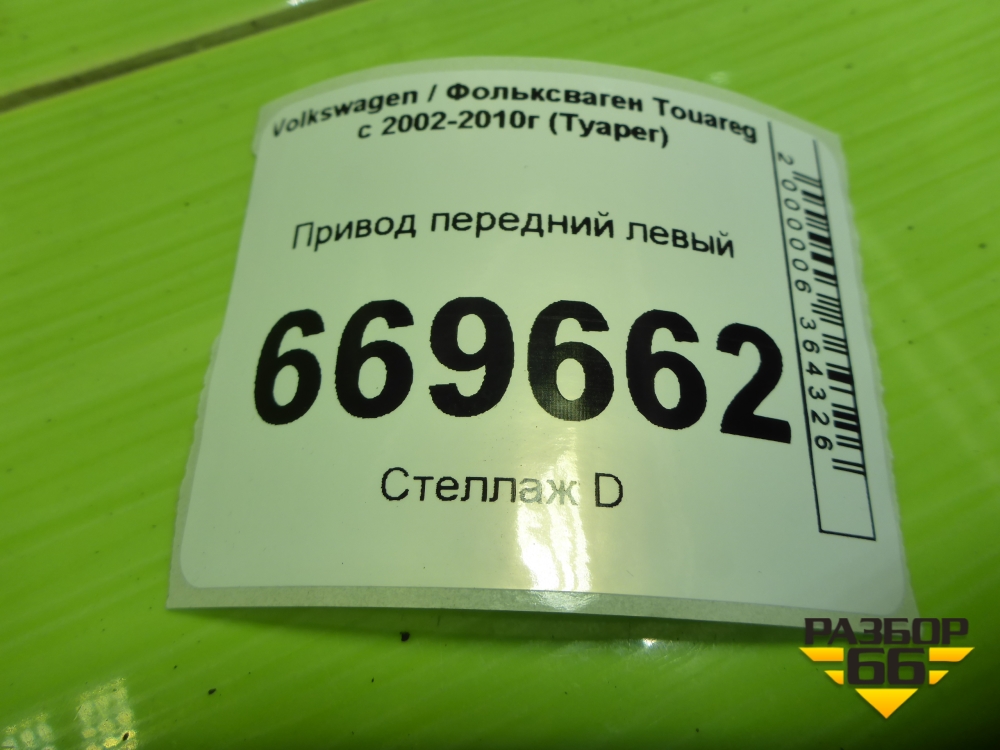 Привод передний левый (шлиц 38) (7L6407271D) для Volkswagen Touareg c 2002-2010г (Туарег) в Москве