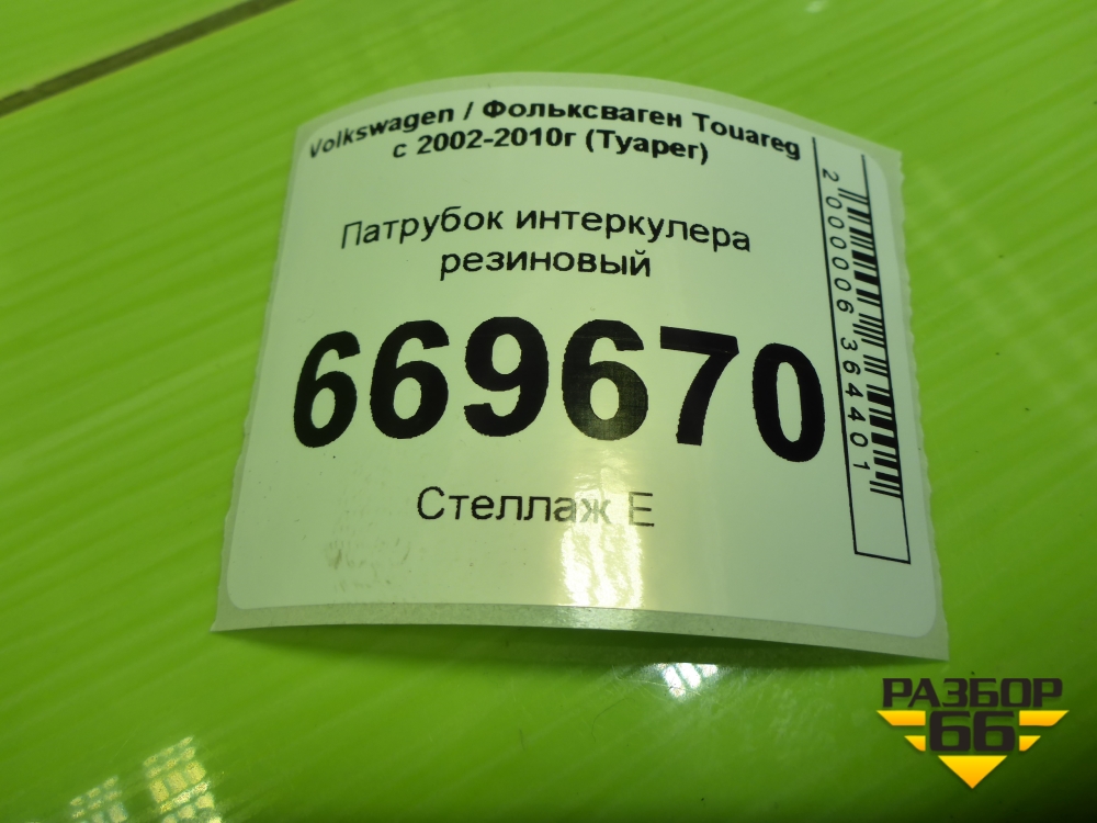 Патрубок интеркулера резиновый для Volkswagen Touareg c 2002-2010г (Туарег) в Москве