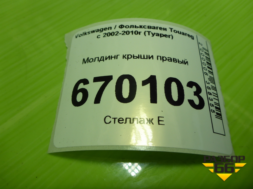 Молдинг крыши правый (7L6860182F) для Volkswagen Touareg c 2002-2010г (Туарег) в Москве
