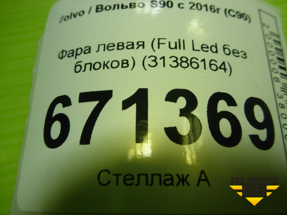 Фара левая (Full Led без блоков адаптивная) (31386164) для Volvo S90 с 2016г (C90) в Москве