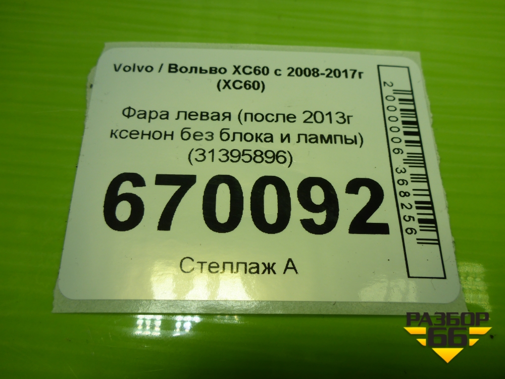 Фара левая (после 2013г ксенон без блока и лампы) (31395896) для Volvo XC60 с 2008-2017г (ХС60) в Москве